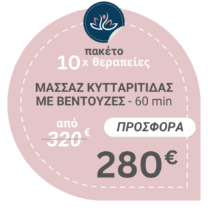 Στο Euphoria Massage, εκτός από τη μεμονωμένη θεραπεία, έχουμε δημιουργήσει ένα ειδικό πακέτο 10 θεραπειών, ώστε να αντιμετωπίσουμε δραστικά τα φαινόμενα της κυτταρίτιδας, με εξαιρετικά και ορατά αποτελέσματα.